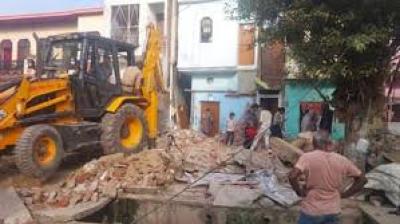भारी पुलिस बल की मौजूदगी में ध्वस्तीकरण