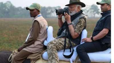 पीएम मोदी ने काजीरंगा में लिया जंगल सफारी का आनंद, हाथी पर बैठकर फोटोग्राफी करते आए नजर