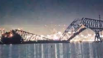 बाल्टीमोर में जहाज के टकराने से पुल का बड़ा हिस्सा नदी में गिरा....
