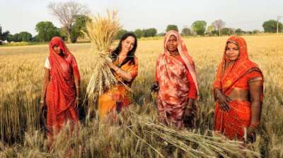 भरी दोपहरी में हेमा मालिनी ने गेंहू की फसल काटी, महिलाओं के संग खिंचवाई तस्वीरें