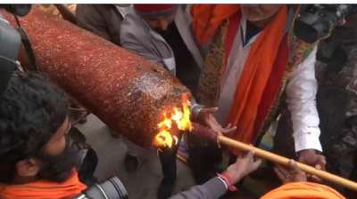 सरयू नदी के रामघाट पर जलाई गई 108 फीट की अगरबत्ती, यह अगरबत्ती 45 दिन तक जलेगी