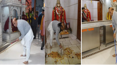 रक्षा मंत्री राजनाथ सिंह हनुमान सेतु मंदिर परिसर में स्वच्छता अभियान के तहत सफाई के काम में हुए शामिल