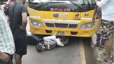 स्कूल बस और स्कूटी की टक्कर, महिला 50 मीटर तक घसीटी गई