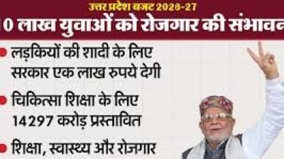 लखनऊ|उत्तर प्रदेश की योगी आदित्यनाथ सरकार ने दसवां बजट पेश किया। वित्त मंत्री सुरेश कुमार खन्ना ने विधानसभा में वित्तीय वर्ष 2026-27 का बजट प्रस्तुत किया। विधान चुनाव से पहले...