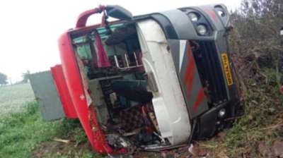 उमरी चौकी के खेरीखता के पास दोपहर एक यात्री बस का अगला टायर फट गया,इससे बस अनियंत्रित होकर पलट गई