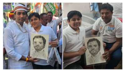 राहुल गांधी के 15 साल के फैन ने बनाई उनकी पेंटिंग, मिल नहीं पाया तो युवक कांग्रेस के अध्यक्ष को दी