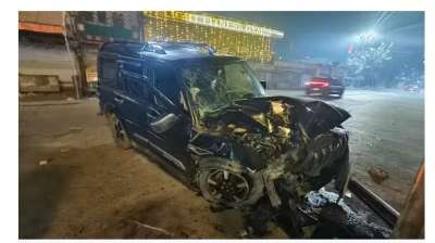 तेज रफ्तार स्कार्पियों मोड़ पर बिजली पोल से टक्कराई,गेट तोड़कर घायल युवकों को निकाला