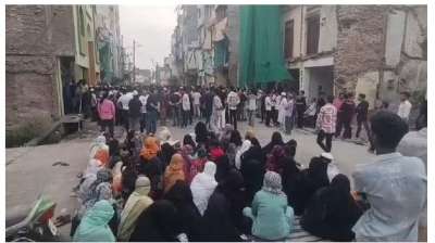 धार्मिक स्थलों का अतिक्रमण हटाने पहुंचे थे अधिकारी और पुलिस की टीम, महिलाएं नाराज होकर धरने पर बैठीं