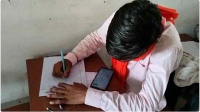 रीवा में खुलेआम नकल: किताब खोलकर परीक्षा देते दिखे छात्र, वीडियो वायरल