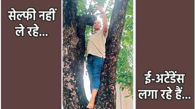 सर्वर डाउन का असर, शिक्षकों को मोबाइल लेकर छत पर चढ़ना पड़ा
