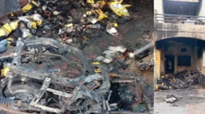 स्कूटी की बैटरी फटने से व्यवसायी के मकान में लगी भीषण आग