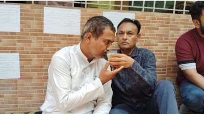 जगदीश कौशिक का अनशन हुआ खत्म, कांग्रेस प्रत्याशी देवेंद्र यादव जूस पिलाकर तुडवाई भूख हड़ताल