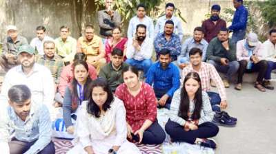 गृह निर्माण मंडल कार्यालय के प्लेसमेंट कर्मचारियों का कलम बंद आंदोलन