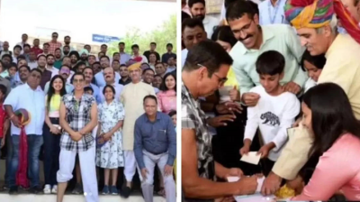 फिल्म 'जॉली एलएलबी 3' के सेट पर अक्षय कुमार की झलक देखने के लिए फैंस की उमड़ी भीड़