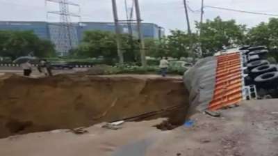 गुरुग्राम में 133 मिमी बारिश, पेरीफेरल पर धंसी सड़क, ट्रक पलटा