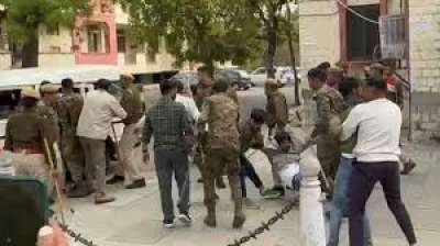 पुलिस ने बल प्रयोग कर छात्रों को सड़क पर घसीटा