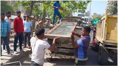 नगर निगम टीम ने अस्थाई अतिक्रमणों पर की कार्यवाही