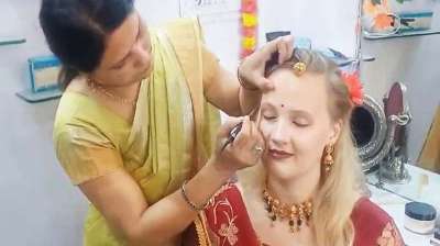 अजमेर की तीर्थ नगरी पुष्कर में रूप चौदस पर विदेशी युवतियों ने भी किया श्रृंगार, ब्यूटी पार्लरों पर रही चहल-पहल