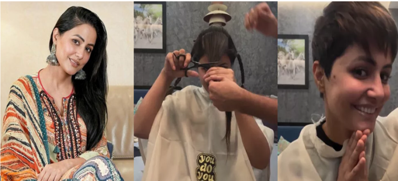 कैंसर से लड़ रहीं एक्ट्रेस हिना खान ने कटवाए बाल