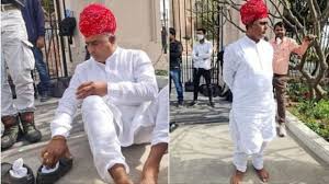 जयपुर । राजस्थान की पूर्व गहलोत सरकार के कार्यकाल में कांग्रेस के एक विधायक ने बालोतरा को जिला बनाने की मांग को लेकर जूते चप्पल का त्याग किया था। करीब एक साल तक वे नंगे पैर घूमे। जब तत्कालीन मुख्यमंत्री ने बालोतरा को जिला बनाने की घोषणा की तो जनता ने अपने विधायक को चांदी की जूतियां पहनाई थी। उन विधायक का नाम है मदन प्रजापत। अब भजनलाल सरकार में भी भाजपा के एक विधायक ऐसे हैं जिन्होंने पूरे 226 दिन से जूते चप्पल नहीं पहने। वे अपने क्षेत्र में सड़क की मांग कर रहे थे। हाल ही में बजट भाषण में जब सड़क निर्माण का ऐलान हुआ तो उन्होंने जूते चप्पल वापस पहने हैं।