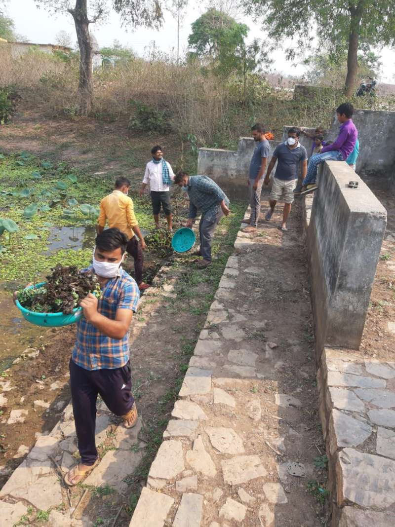 गांवो में श्रमदान से सार्वजनिक एवं धार्मिक स्थानों की साफ-सफाई