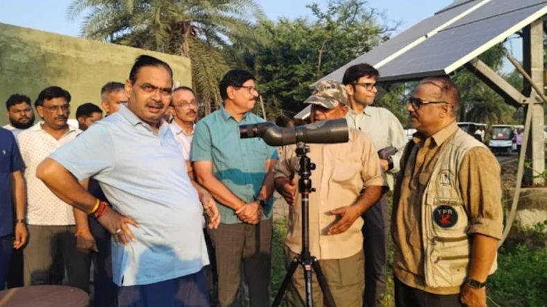 सीएम ने पक्षियों को दूरबीन से निहारा