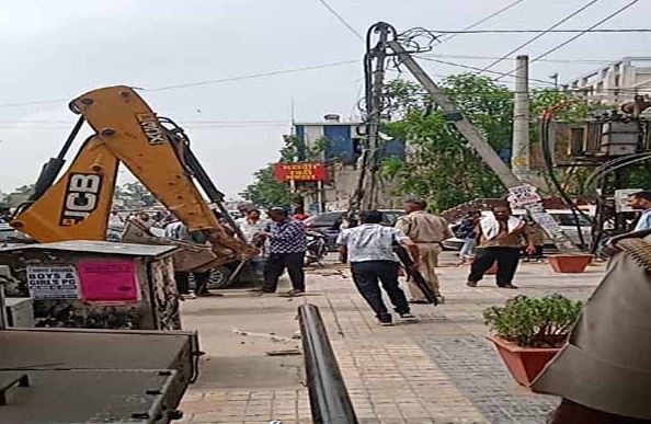 जयपुर । नगर निगम ग्रेटर आयुक्त रूकमणि रियाड़ के निर्देषानुसार उपायुक्त सतर्कता अजय कुमार शर्मा के नेतृत्व में सतर्कता शाखा की टीम द्वारा नगर निगम जयपुर ग्रेटर के क्षेत्राधिकार में एसएमएस हॉस्पिटल ट्रोमा सेन्टर के सामने विवेकानन्द मार्ग पर दोनों तरफ से 01 किलोमीटर तक स्थाई लगभग 150 स्थाई/अस्थाई अतिक्रमण को हटवाया गया व मौसम विभाग, चीलगाडी रेस्टोरेन्ट, डब्ल्यूटीपी मॉल के पास एवं मालवीय नगर जोन के सामने से अस्थाई अतिक्रमण करने वालों के विरूद्ध 2 हजार रूपये का कैरिंग चार्ज कर 02 केन्टर सामान जब्त किया गया। उपायुक्त सतर्कता अजय कुमार ने बताया कि नगर निगम ग्रेटर क्षेत्राधिकार में एसएमएस हॉस्पिटल ट्रोमा सेन्टर के सामने विवेकानन्द मार्ग पर दोनों तरफ से 01 किलोमीटर तक स्थाई लगभग 150 स्थाई/अस्थाई अतिक्रमण को हटवाया गया व मौसम विभाग, चीलगाडी रेस्टोरेन्ट, डब्ल्यूटीपी मॉल के पास एवं मालवीय नगर जोन के सामने से अस्थाई अतिक्रमण हटवाया गया। उपरोक्त कार्यवाही के दौरान 02 केन्टर सामान जब्त कर गोदाम में भिजवाया गया व मौके पर अस्थाई अतिक्रमण करने वालों से मौके पर 2 हजार रूपये का केरिंग चार्ज वसूल किया गया तथा दौरे के दौरान कार्यवाही सतर्कता टीम द्वारा मौके पर समझाईष करते हुए मौखिक पाबंद करवाया कि भविष्य में अस्थाई अतिक्रमण समय से हटा ले अन्यथा नगर निगम जयपुर ग्रेटर के क्षेत्राधिकार में अवैध अतिक्रमण करने वालों के विरूद्ध भारी चालान या प्रभावी कार्यवाही अमल में लाई जायेगी।