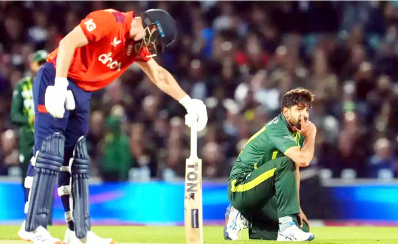 इन तीनों के अलावा अनुभवी बल्लेबाज इफ्तिखार अहमद ने 21 रन तो गेंदबाज नसीम ने 16 रन का योगदान दिया। पाकिस्तान के छह बल्लेबाज दहाई का आंकड़ा नहीं छू सके। इनमें चार बल्लेबाज अपने खाता भी नहीं खोल सके और पाकिस्तान 19.5 ओवर में 157 रन बनाकर सिमट गई। इंग्लैंड की तरफ से वूड, राशिद और लिविंग्स्टोन को 2-2 विकेट मिले।