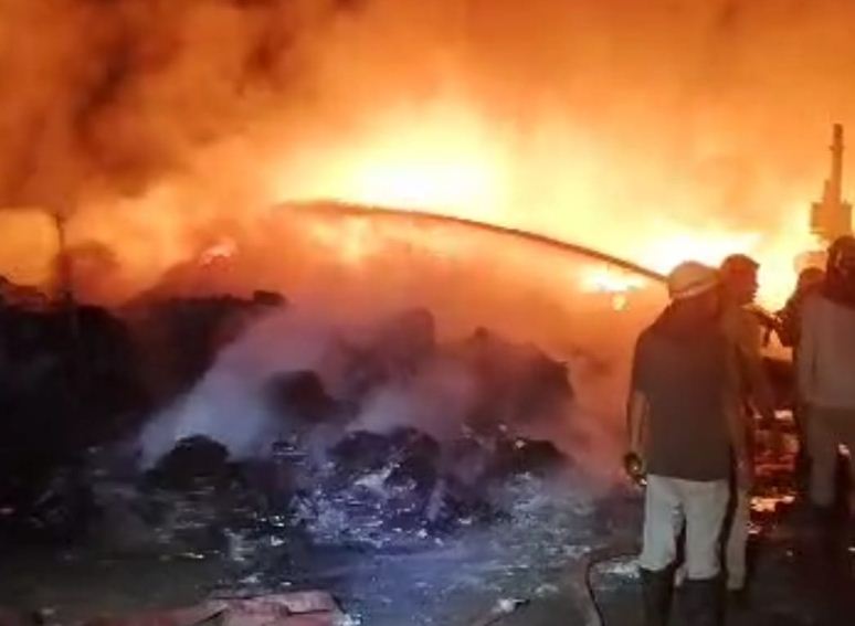 प्लास्टिक रीसायकल फैक्ट्री में लगी आग, प्लास्टिक जला