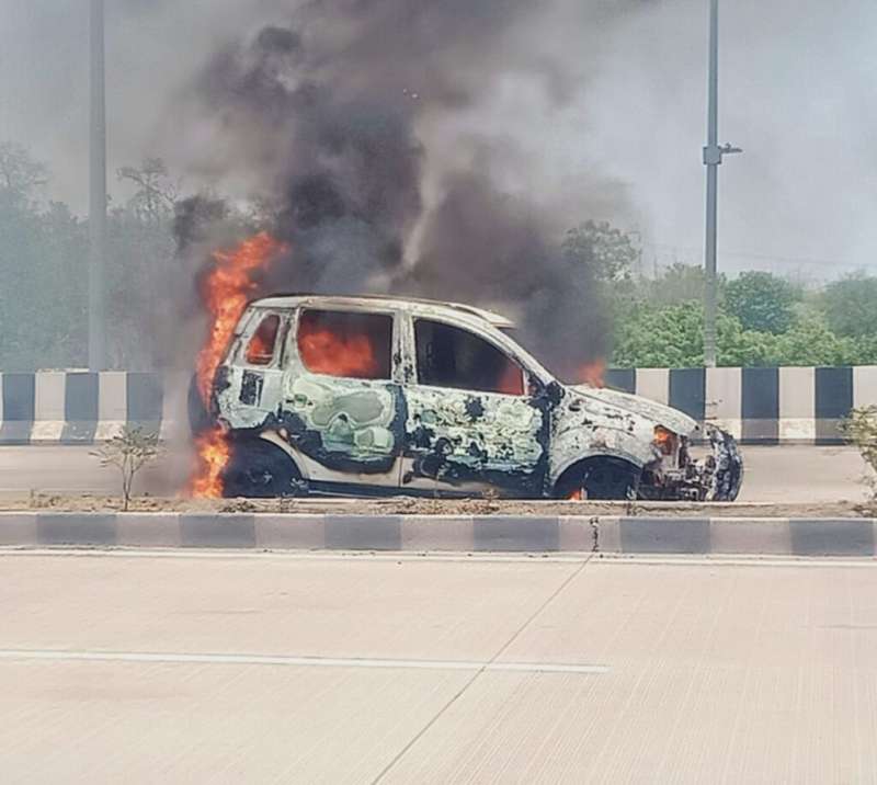 चलती कार में लगी आग