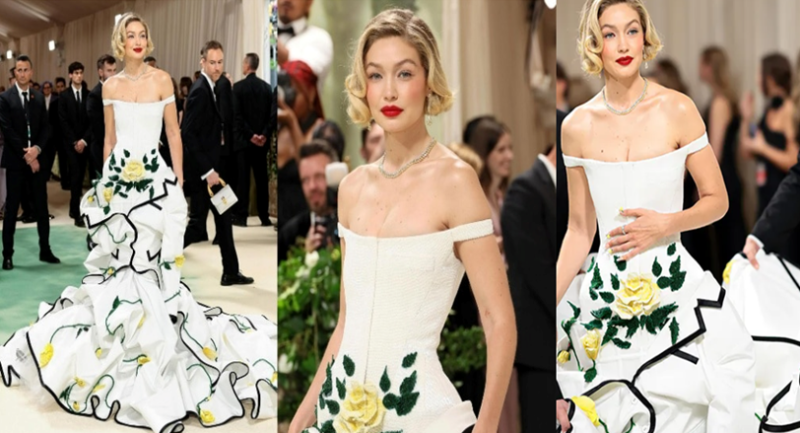 हदीद की ड्रेस जितनी खूबसूरत थी, उतने ही आत्मविश्वास के साथ उन्होंने इसे पहना हुआ था। मीडिया रिपोर्टस के मुताबिक, अपनी भव्य एंट्री से पहले, हदीद ने प्रशंसकों को पीले गुलाब बांटकर 'गार्डन ऑफ टाइम' थीम की भावना को प्रदर्शित किया था। इसके अलावा उनकी गाउन को डिजाइन करना भी कोई छोटी उपलब्धि नहीं थी, इसके लिए 70 से अधिक कारीगरों की विशेषज्ञता लगी। इसके साथ ही 13,500 घंटे से अधिक समय तक इसे सावधानीपूर्वक हाथों से डिजाइन किया गया।