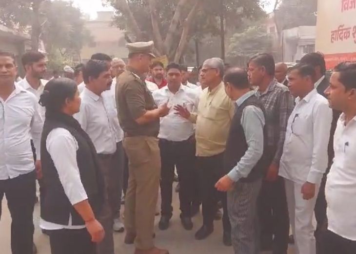 एसपी कार्यालय पर वकीलों का प्रदर्शन, तीन दिन नहीं करेंगे कार्य