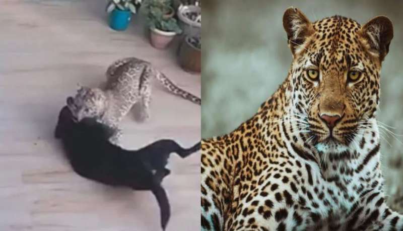 तेंदुए ने कुत्ते की गर्दन पर मारा झपटा
