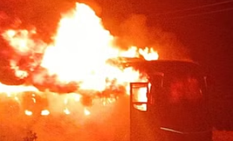 अजमेर में वीडियोकोच बस में लगी भीषण आग