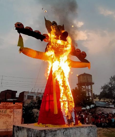 यूपी के सोनभद्र में 85 फीट ऊंचे रावण की चारों तरफ घूमती नजर आई मुंडी