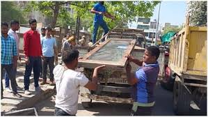 जयपुर । नगर निगम ग्रेटर आयुक्त श्रीमती रूकमणि रियाड़ के निर्देशानुसार उपायुक्त सतर्कता अजय कुमार शर्मा एवं उपायुक्त सांगानेर जोन के नेतृत्व में सतर्कता शाखा की तीन टीम बनाकर अलग-अलग जगहों पर संयुक्त रूप से यातायात पुलिस, स्थानीय पुलिस एवं पशु प्रबंधन के साथ समन्वय बनाकर सतर्कता शाखा टीम द्वारा नगर निगम जयपुर ग्रेटर के क्षेत्राधिकार में मालपुरा रोड़ पर सांगानेर में ईदगाह से लेकर रेल्वे लाइन तक रोड़ के दोनों तरफ टीनशेड व नाली पर बने समस्त चबूतरों को जेसीबी की सहायता से ध्वस्त करते हुए स्थाई/अस्थाई अतिक्रमण करने वालों के विरूद्ध 46 हजार रूपये का कैरिंग चार्ज कर 1 केन्टर सामान जब्त किया।