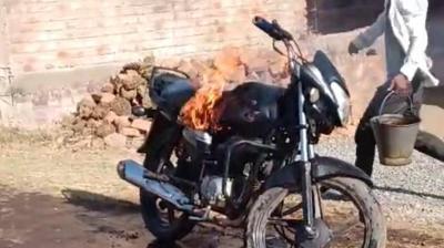 रंजिश का बदला: पेट्रोल डालकर जला दी बाइक, आरोपी की तलाश जारी 🔥