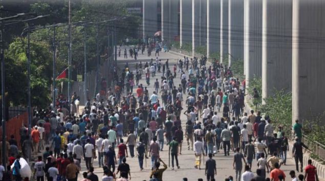 हजारों प्रदर्शनकारियों ने देश में लगे कर्फ्यू का उल्लंघन करते हुए ढाका की सड़कों पर मार्च किया और बाद में प्रधानमंत्री के आधिकारिक आवास पर हमला बोल दिया।राजधानी ढाका में बख्तरबंद गाड़ियों के साथ सैनिकों और पुलिस ने शेख हसीना के कार्यालय तक जाने वाले मार्गों पर कांटेदार तार लगाकर रोक लगाई गई थी, लेकिन भीड़ सड़कों पर उतर आई और अवरोधकों को तोड़ दिया।