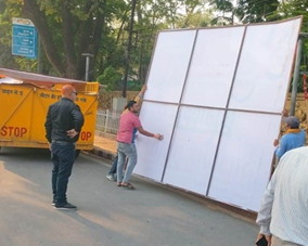 आदर्श आचार संहिता लगने के साथ ही शनिवार की शाम नगर निगम के अतिक्रमण विरोधी दस्ता ने शहर में लगे राजनीतिक पार्टी व उनके जनप्रतिनिधियों के बैनर, पोस्टर निकालने का काम किया शुरू कर दिया गया है। मालूम हो कि शहर के हर क्षेत्र में राजनीतिक पार्टी के बैनर, पोस्टर से पटे हुए है, जिसे हटाने में समय लग रहा है।