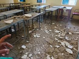 भीकमकोर के सरकारी गर्ल्स स्कूल उच्च माध्मिक विद्यालय में शनिवार को हुई बरसात के बाद यह हादसा हुआ। स्कूल की इमारत की पट्टियां भरभराकर नीचे गिर गईं। गनीमत रही कि इस घटना के वक्त छात्राएं उसके पास के क्लासरूम में थीं जिससे कोई बड़ा हादसा नही हुआ। विद्यालय भवन पूरा बरसात के कारण जर्जर हो गया है और सभी जगह पानी टपक रहा है। इसके चलते स्कूल में अब भी ऐसे अन्य हादसे का खतरा है। बारिश के बाद टपकती छत के चलते स्कूल में रखे जरूरी दस्तावेज भी पानी से भीग गए हैं। इस स्कूल में केवल बालिका पढ़ती हैं जिनकी संख्या लगभग 230 है। इस घटना के बाद अभिभावकों को डर है कि हमारी बच्चियों के साथ कभी बड़ा हादसा न हो जाए। वे बारिश में बच्चों को स्कूल भेजने से डर रहे हैं। इस गर्ल्स स्कूल में 12 कक्षाएं लगती हैं। बच्चियों की संख्या 200 से अधिक है, लेकिन उनके बैठने के लिए 7 कमरे हैं। इसमें सभी बच्चों को साथ में बिठाया जाता है। 2 महीने पहले एक कमरा बनाया था। उसमें भी बरसात के कारण पानी टपक रहा है। निर्माण भले ही नया है, लेकिन टपकते पानी से उसकी हालत भी जर्जर जैसी है।