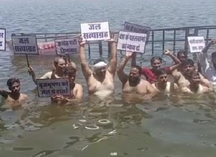सत्य के लिए जल में उतरे': चंबल में यूथ कांग्रेस का अनोखा प्रदर्शन